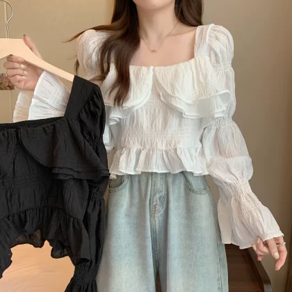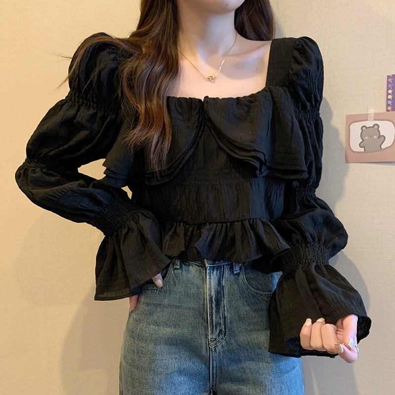| nameOriginal | Fat mm French square collar early autumn ruffled long-sleeved shirt |