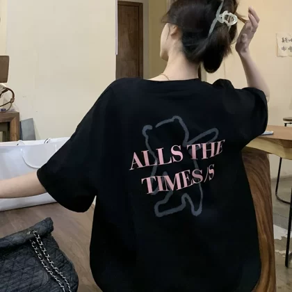 | nameOriginal | Fat MM loose pure cotton black printed short-sleeved T-shirt |