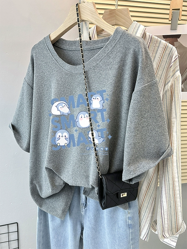 | nameOriginal | Fat mm pure cotton right shoulder short-sleeved T-shirt women's summer new oversize large size loose slimming belly-covering top |