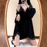 Fat sister lace stitching sexy women's suspender nightgown