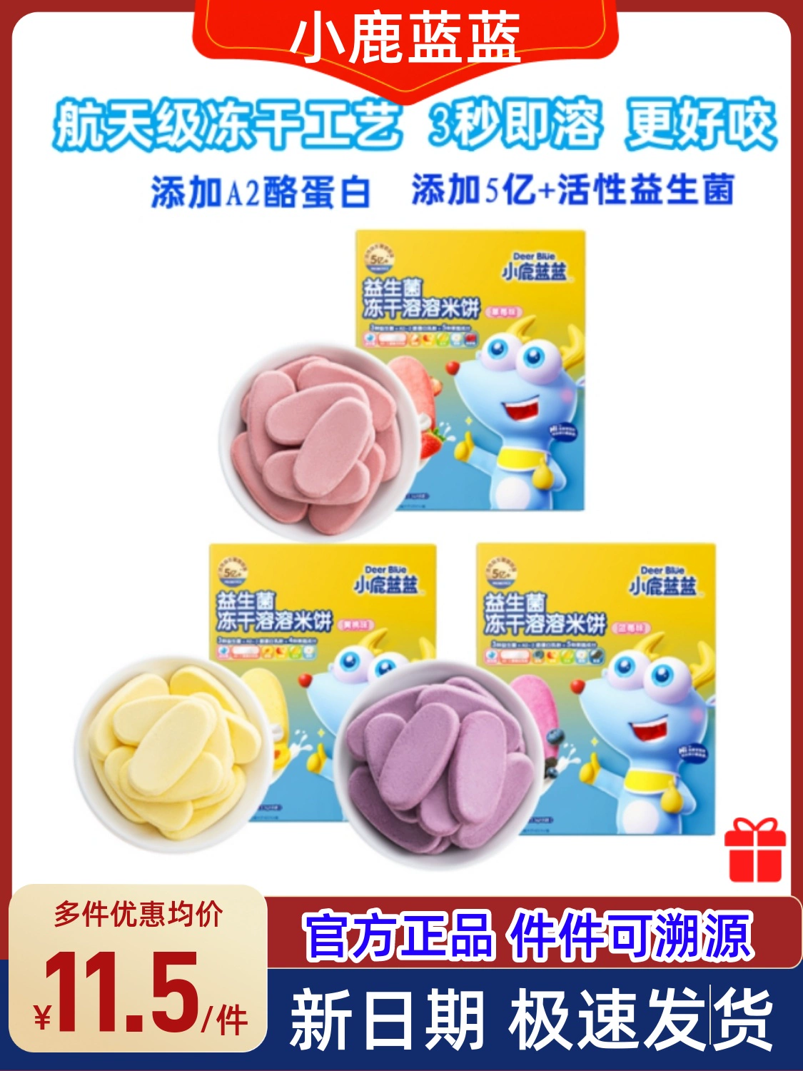 Fawn Blue Freeze-dried Rice Cake Probiotics Easily Soluble Teething Biscuits Snacks for Baby No Additives Recipe