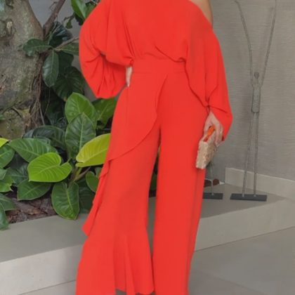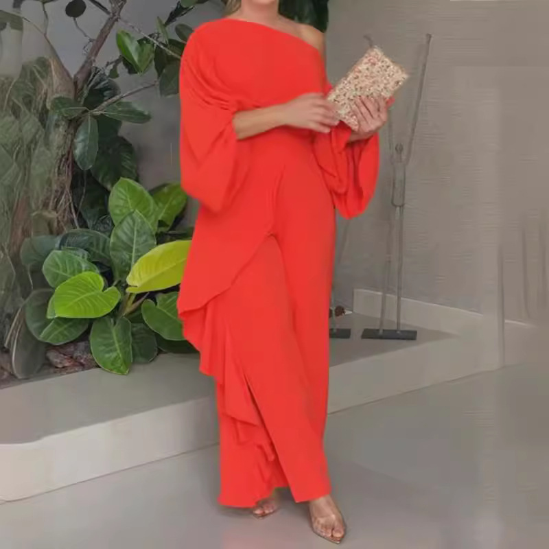 | nameOriginal | FD1611 in stock 2024 Fall/Winter New Cross-border Women's Personality Loose Oblique Collar Top Bell Pants Two-piece Set |