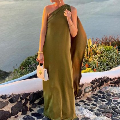 FD1622 ربيع وصيف 2024 وصل حديثًا فستان نسائي أنيق مطبوع برقبة مائلة غير منتظم متوسط ​​الطول