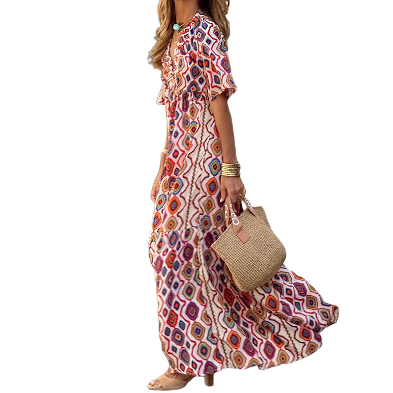 | nameOriginal | FD1715 2024 Spring and Summer New Cross-border Women's Fashion Elegant Printed V-neck Bohemian Mid-length dress |