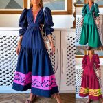 FD850 spot 2024 cross-border spring and autumn new European and American women's fashion temperament V-neck large pendulum dress