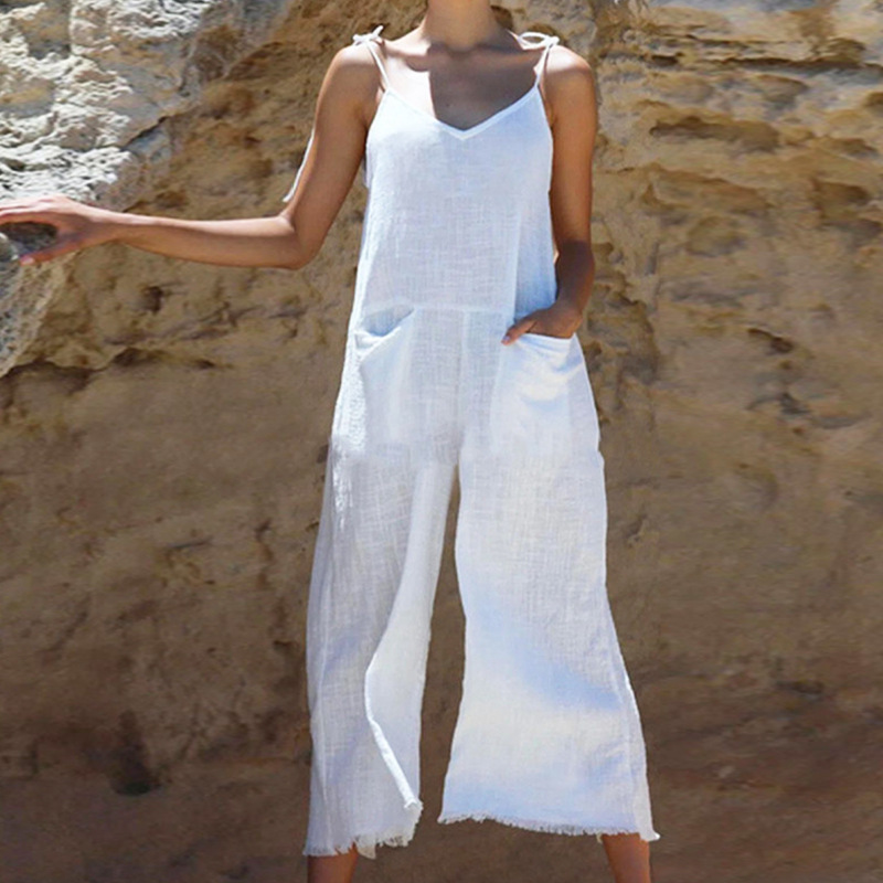 FD905 Spot 2024 Cross-border Women's Summer New Fashion Solid Color Sexy Sling Cotton Linen Long Jumpsuit