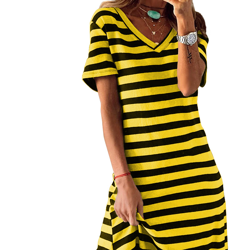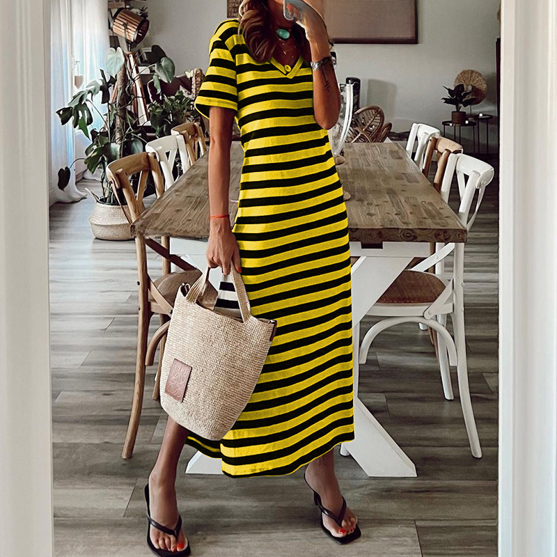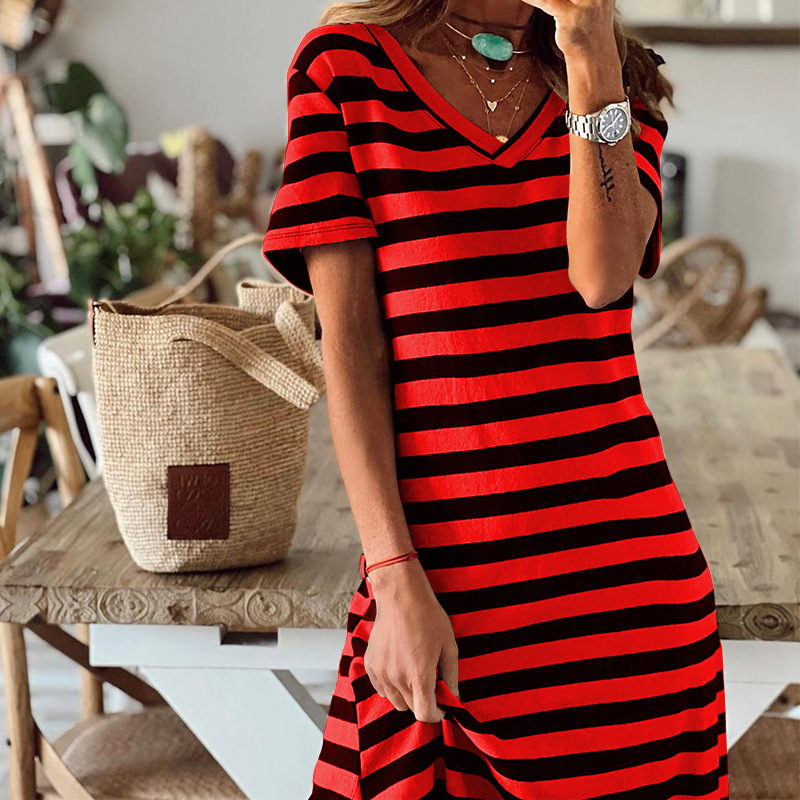 | nameOriginal | FD990 spot cross-border Amazon 2022 summer new women's loose short sleeve striped straight dress |