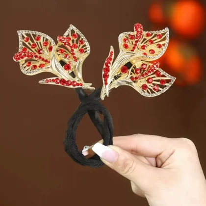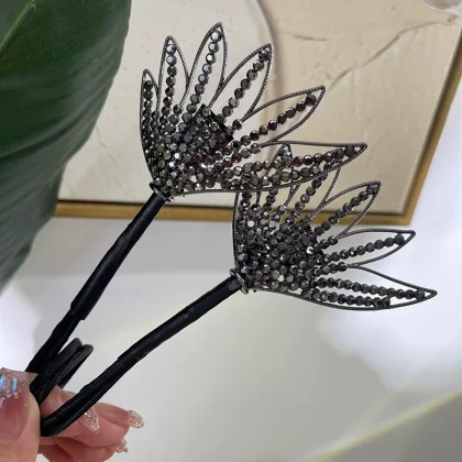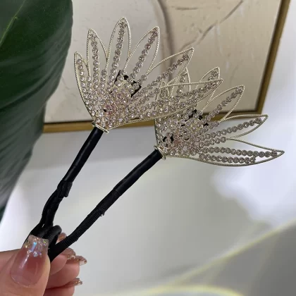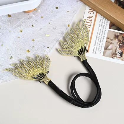 مشبك ملتوي من الريش ورأس كروي ثابت وأحجار الراين