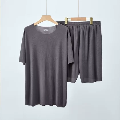 nameOriginal | FEIYUE leap summer ice silk pajamas thin couple trousers home clothes outer wear men's short-sleeved shorts suit |