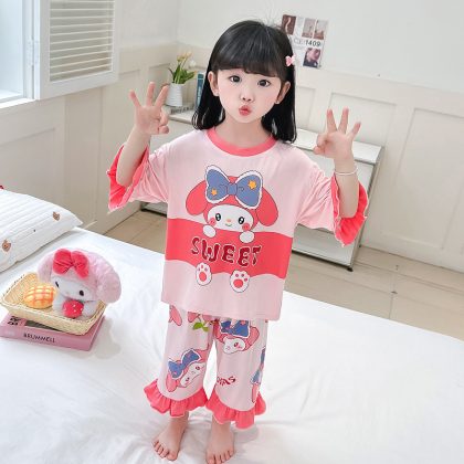 Female Baby Modal Summer Sweat Absorbing 2024 New suit Girls Air-conditioning Wear Thin Children's Breathable Pajamas