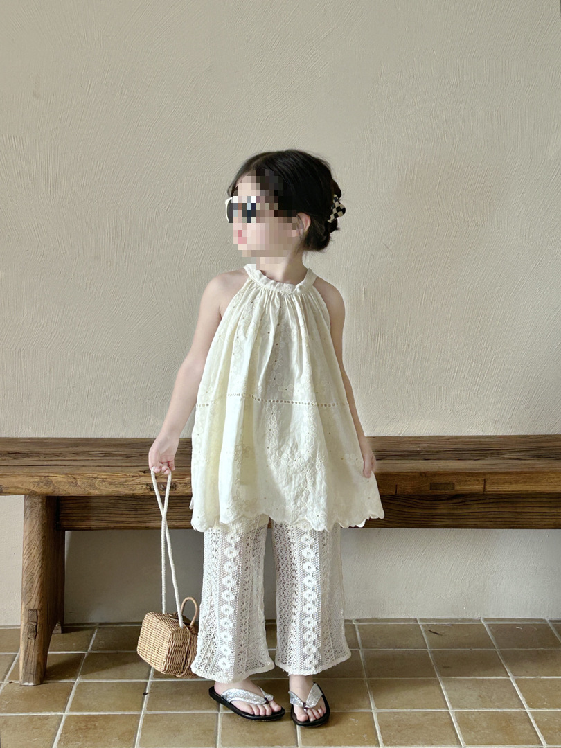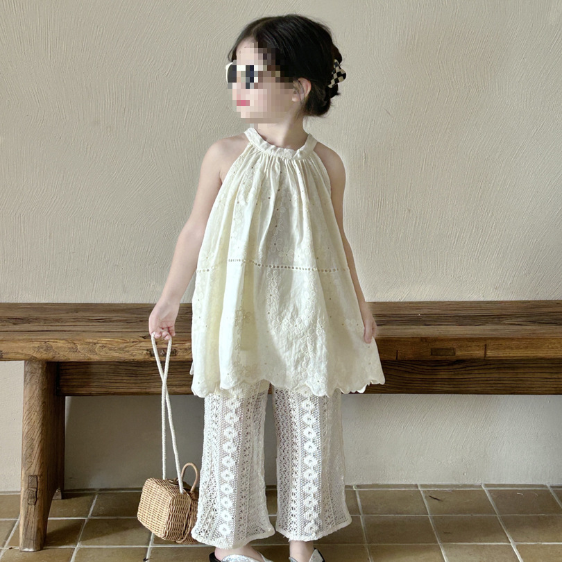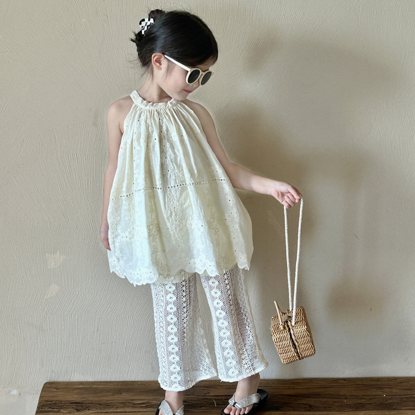 | nameOriginal | Female Baby Summer Embroidered Pear Flower Two-Piece Set 2024 Summer Girls' Sling Top Mesh Lace Pants suit Trendy |