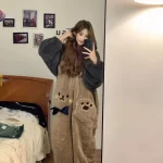 Female cute bear coral velvet thickened one-piece pajamas