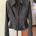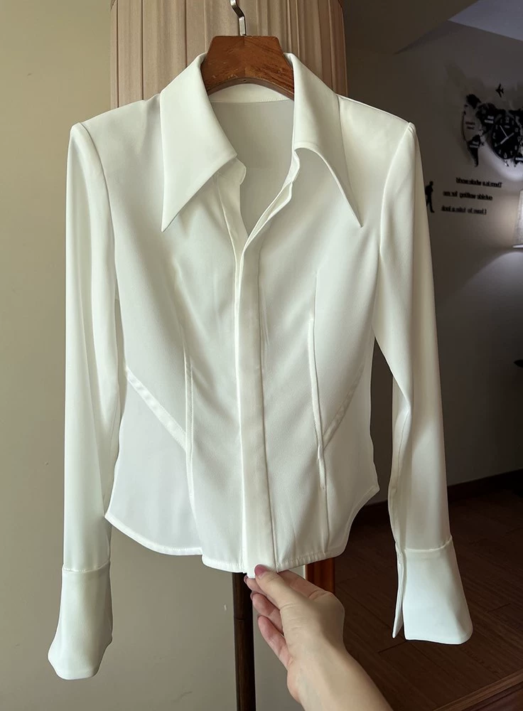 | nameOriginal | Feminine anti-wrinkle slim fit waist slimming shirt women's short spring and summer peak collar trumpet sleeve shoulder pad top |