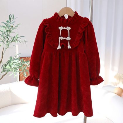 | nameOriginal | Festive New Year Dress Girl's Chinese Style Buckle Red dress Autumn and Winter Children's fleece-lined Thickened Princess Dress |