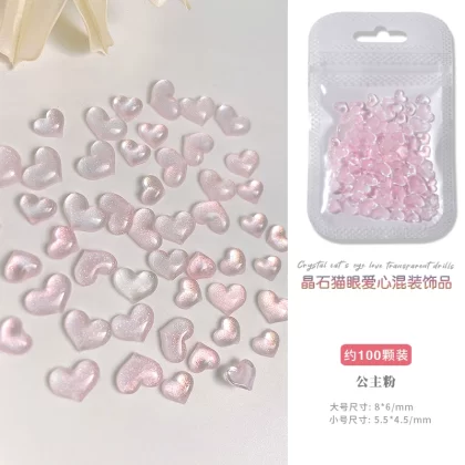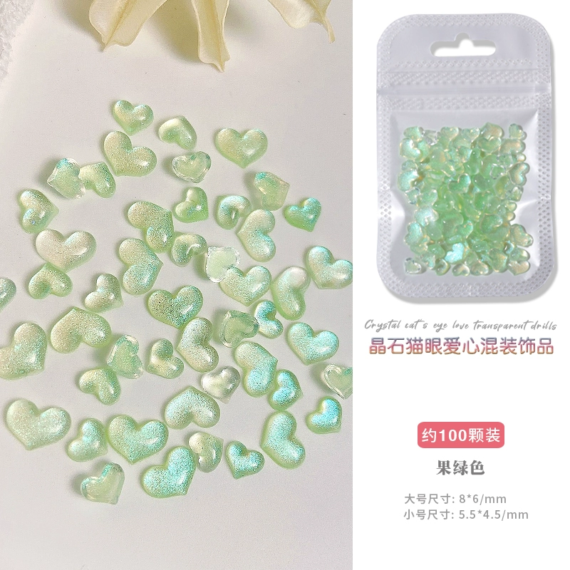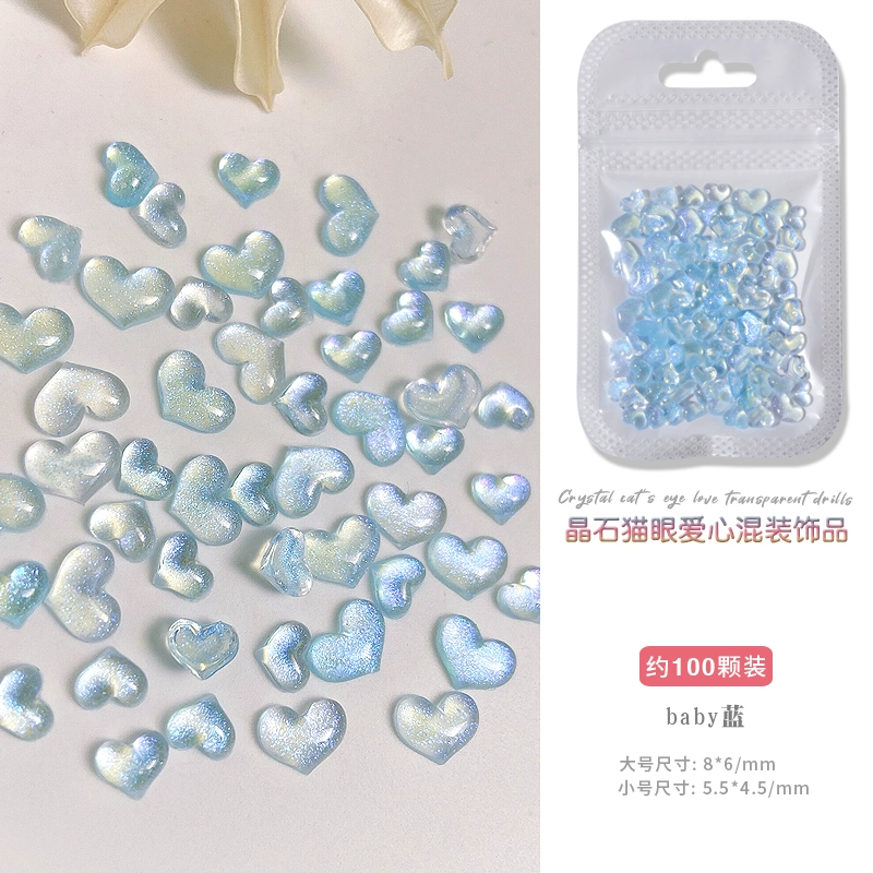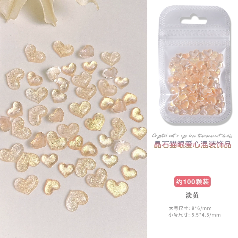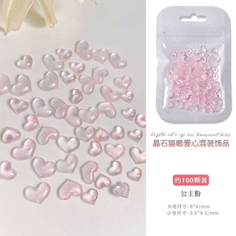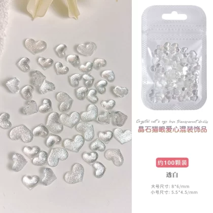 | nameOriginal | Fine sparkling 100 large and small pearlescent heart-shaped flat diamonds |