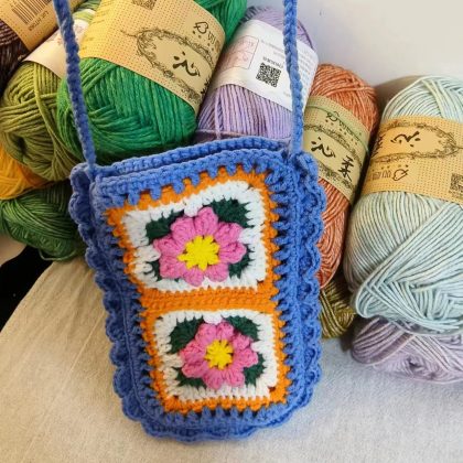 | nameOriginal | [Finished product] hand-crocheted wool knitting crochet bag change DIY mobile phone bag diagonal small flower mobile phone bag |
