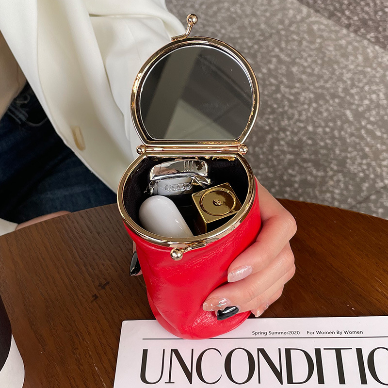 First layer cowhide lipstick bag portable real belt mirror makeup pouch factory direct one-piece delivery wholesale