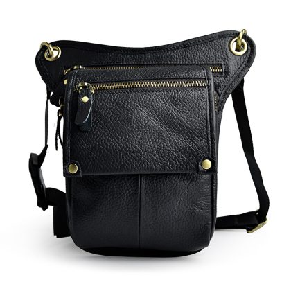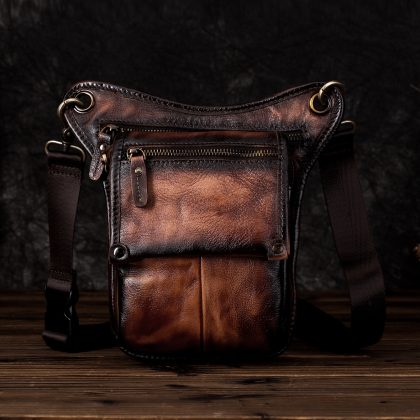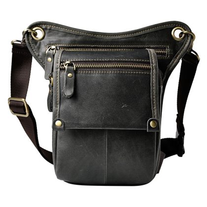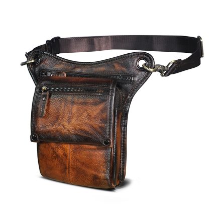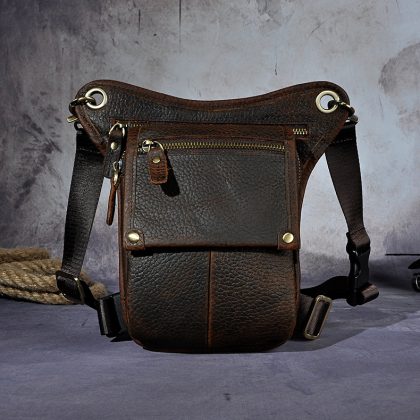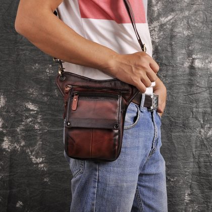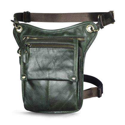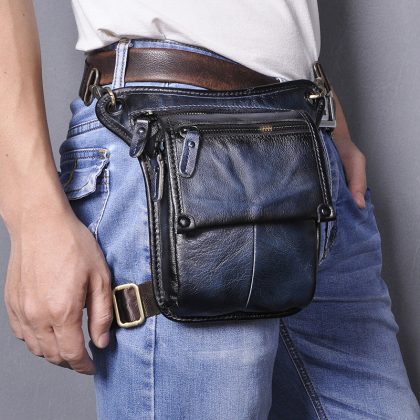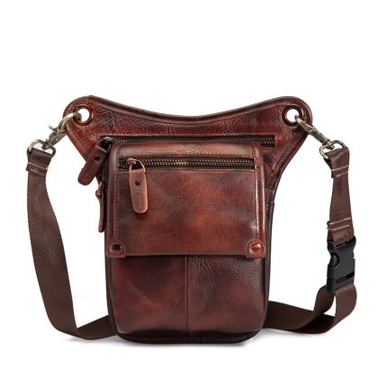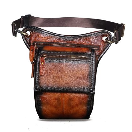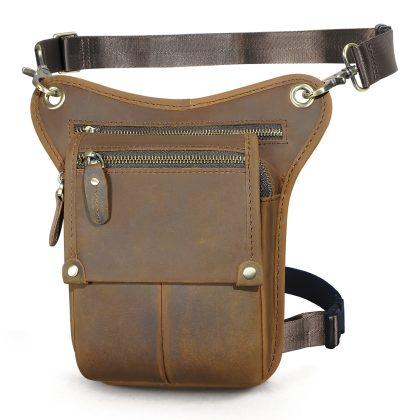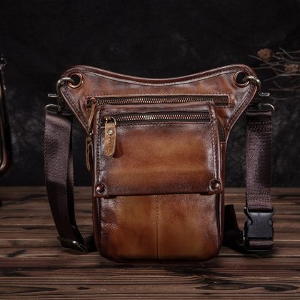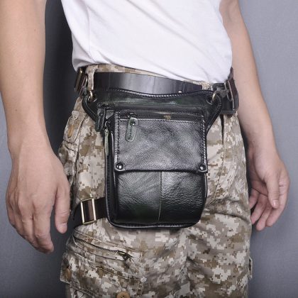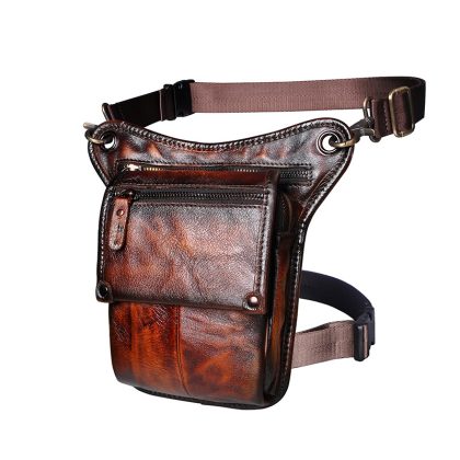 First layer oil wax leather cowhide foreign trade European men's trendy cool mobile phone camera outdoor 8-inch leg bag waist bag 211-4