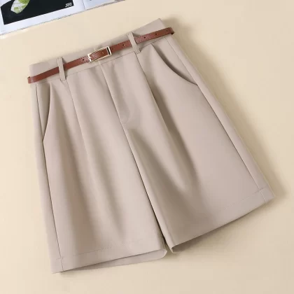 شورت بدلة مستقيمة رفيعة عالية الخصر بخمسة سنتات