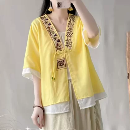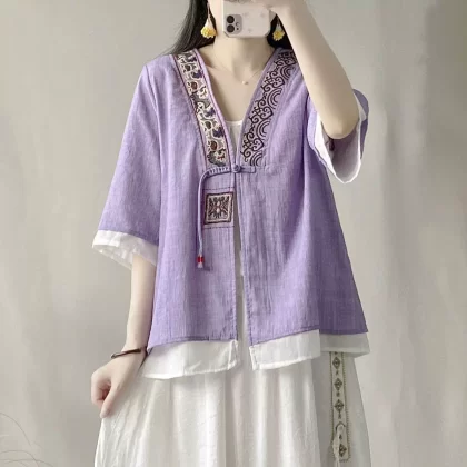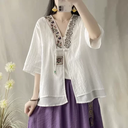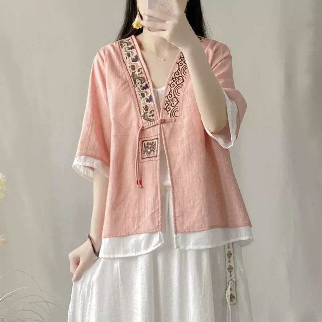 | nameOriginal | Five-point cotton and linen cardigan Chinese style loose tea suit embroidery |