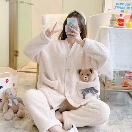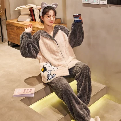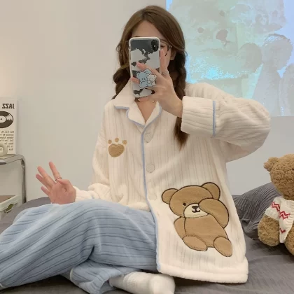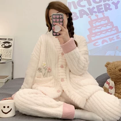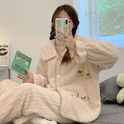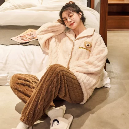 | nameOriginal | Flannel Pajamas Women's Autumn and Winter Thickened and Velvet 2022 New Simple Casual Coral Velvet Home Clothing Set |
