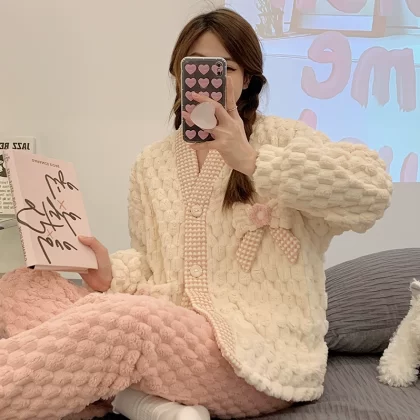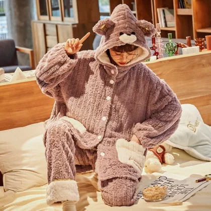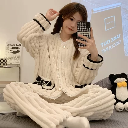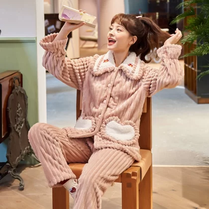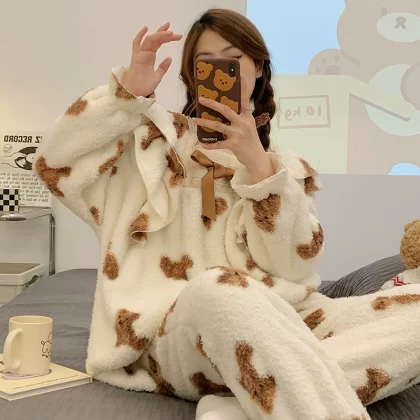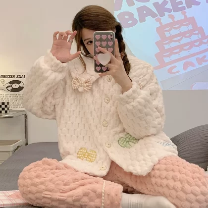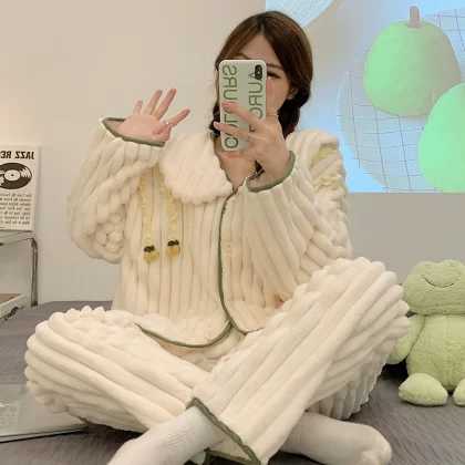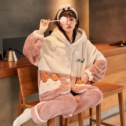 | nameOriginal | Flannel pajamas women's suit autumn and winter style plus velvet and thickened coral velvet warm home clothes can be worn outside in princess style |