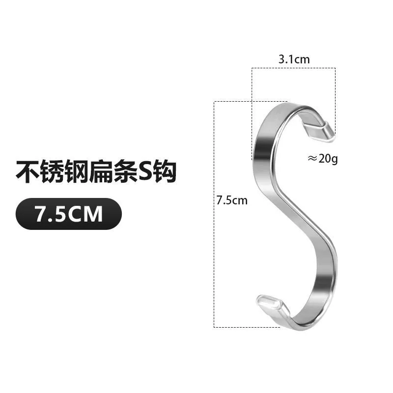 | nameOriginal | Flat S hook thickened flat wire stainless steel S-shaped hook flat bar S-shaped household storage hook kitchen bathroom S hook |