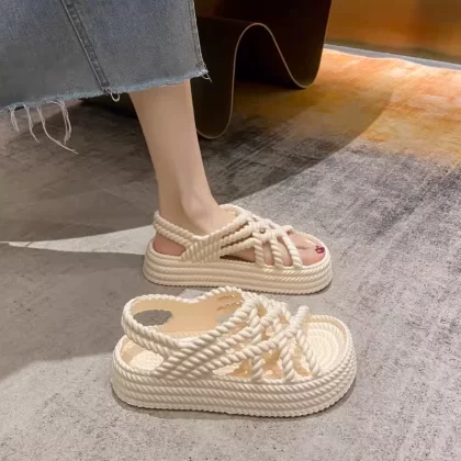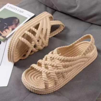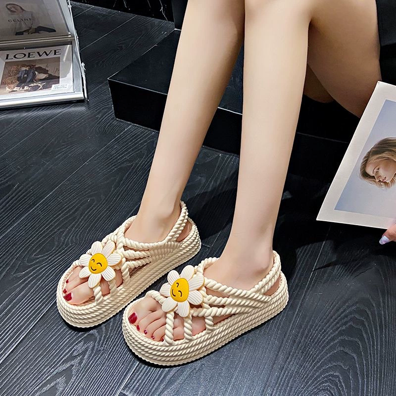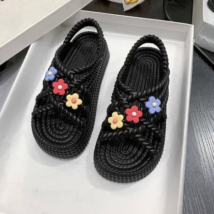 صندل مسطح أنثى 2024 كلمة صيف شهيرة جديدة سميكة جديدة مع القليل