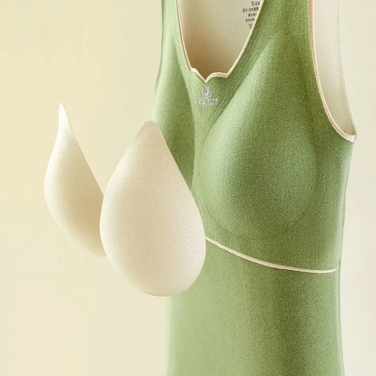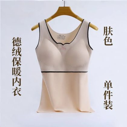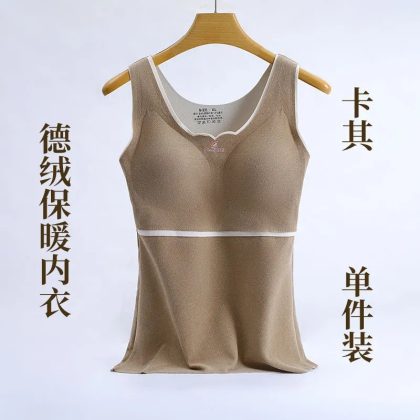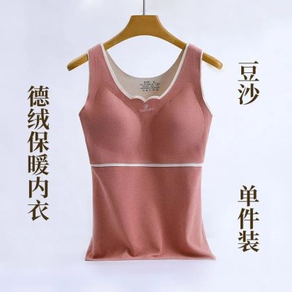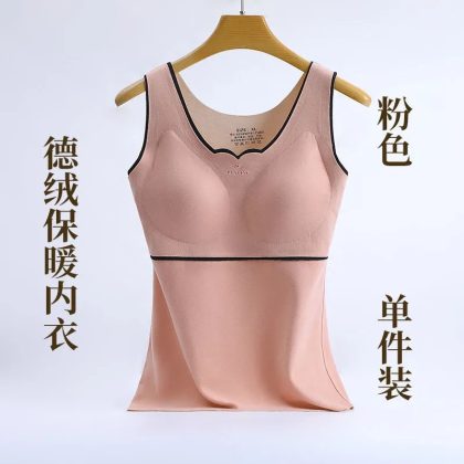 Fleece-lined thermal underwear women's De velvet autumn undershirt inner top thickened vest with chest pad autumn and winter