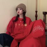 Fleece-lined thickened 2024 Dragon year New Year festive sweater women's winter spring festival New Year New Year greeting Western style long sleeve red top