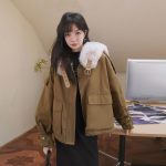 Fleece-lined thickened cotton-padded coat for women winter short 2023 new Korean style loose casual all-match tooling large fur collar cotton-padded coat fashion