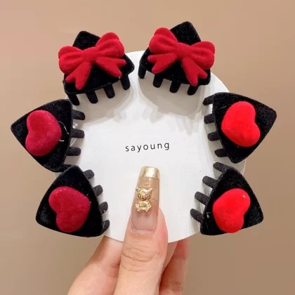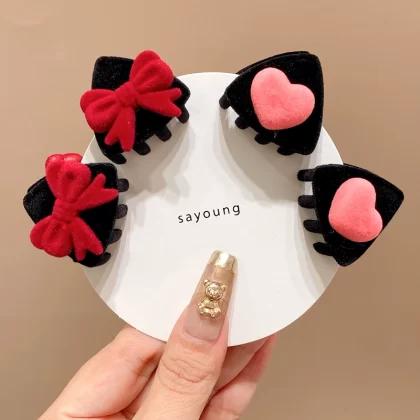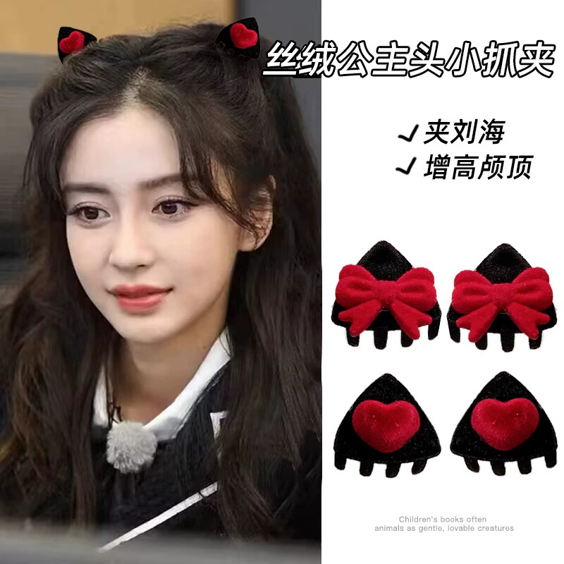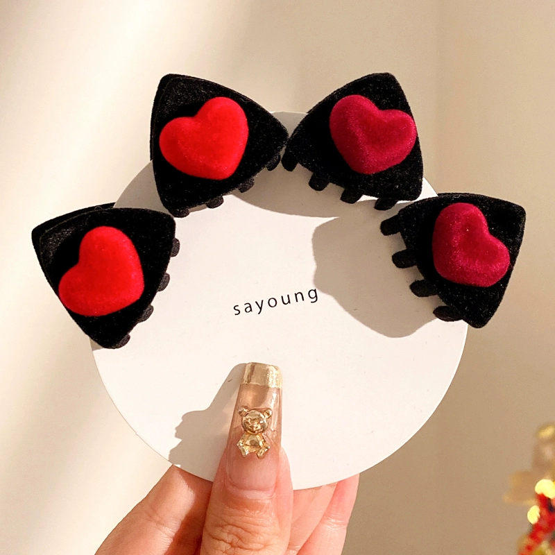 Flocked Love Princess Head Mini Hair Clip Cat Ears