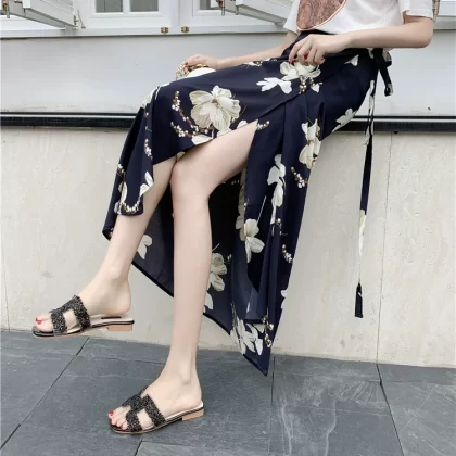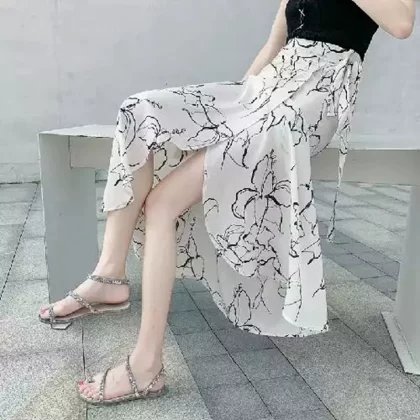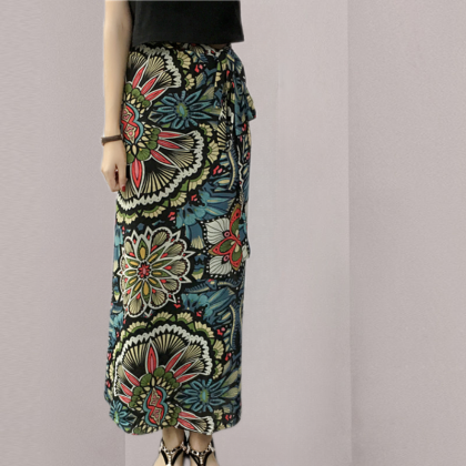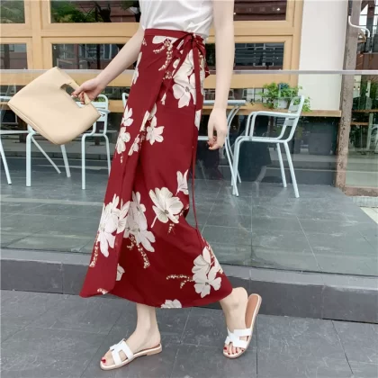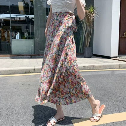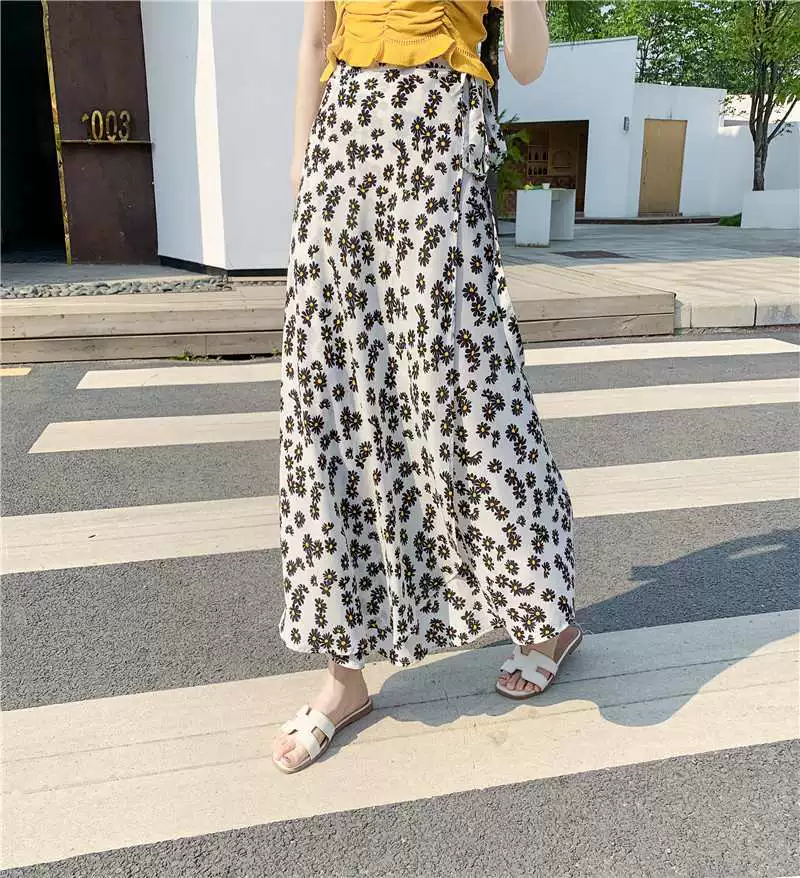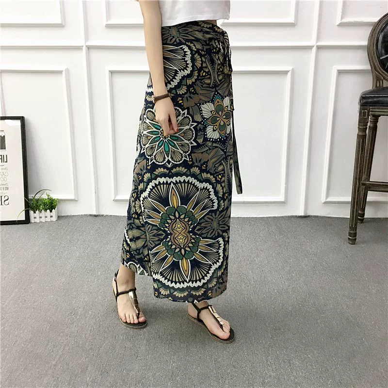 Floral bohemian lace-up chiffon one-piece maxi dress