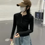 | nameOriginal | Floral Gray Button Slim Cropped Top Long Sleeve T-Shirt |