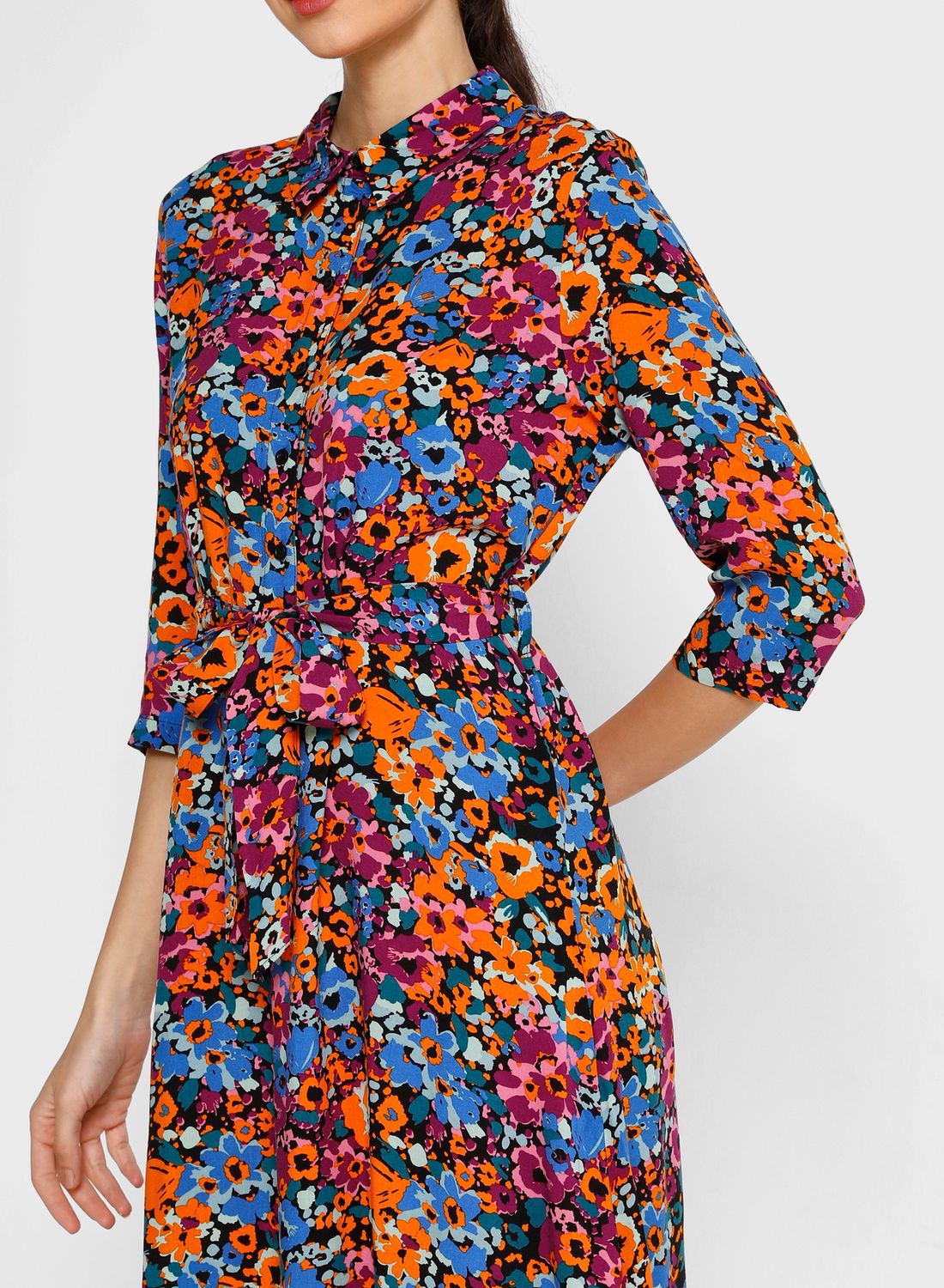 فستان بنقشة الزهور مع ياقة كلاسيكية.