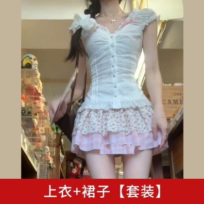 | nameOriginal | Floral Skirt Women's 2024 New Summer Small High Waist Slimming A- line Short Skirt with Top suit Women |