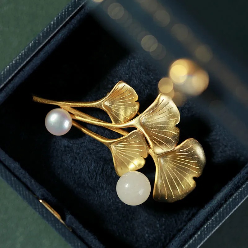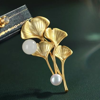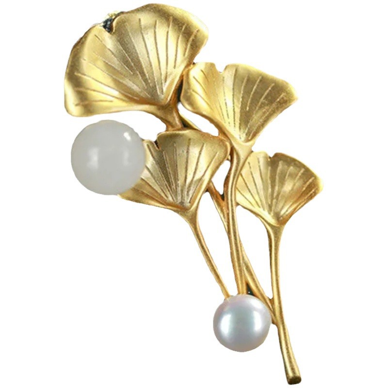 | nameOriginal | Flower brooch apricot leaf Hetian jade round beads Pearl light luxury elegant socialite style pin can be used as Pendant |