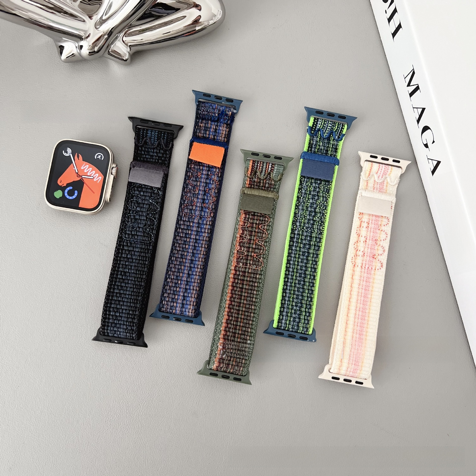 لـ Apple S9 مع حزام ساعة Nike Nylon، iWatch Nike Nylon Loop، حزام فيلكرو منسوج
