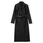 التجارة الخارجية 2022 الخريف والشتاء نمط جديد على الطراز الأوروبي والأمريكي موضة الترفيه ريترو طويل أسود تقليد الجلود خندق معطف المرأة بالجملة