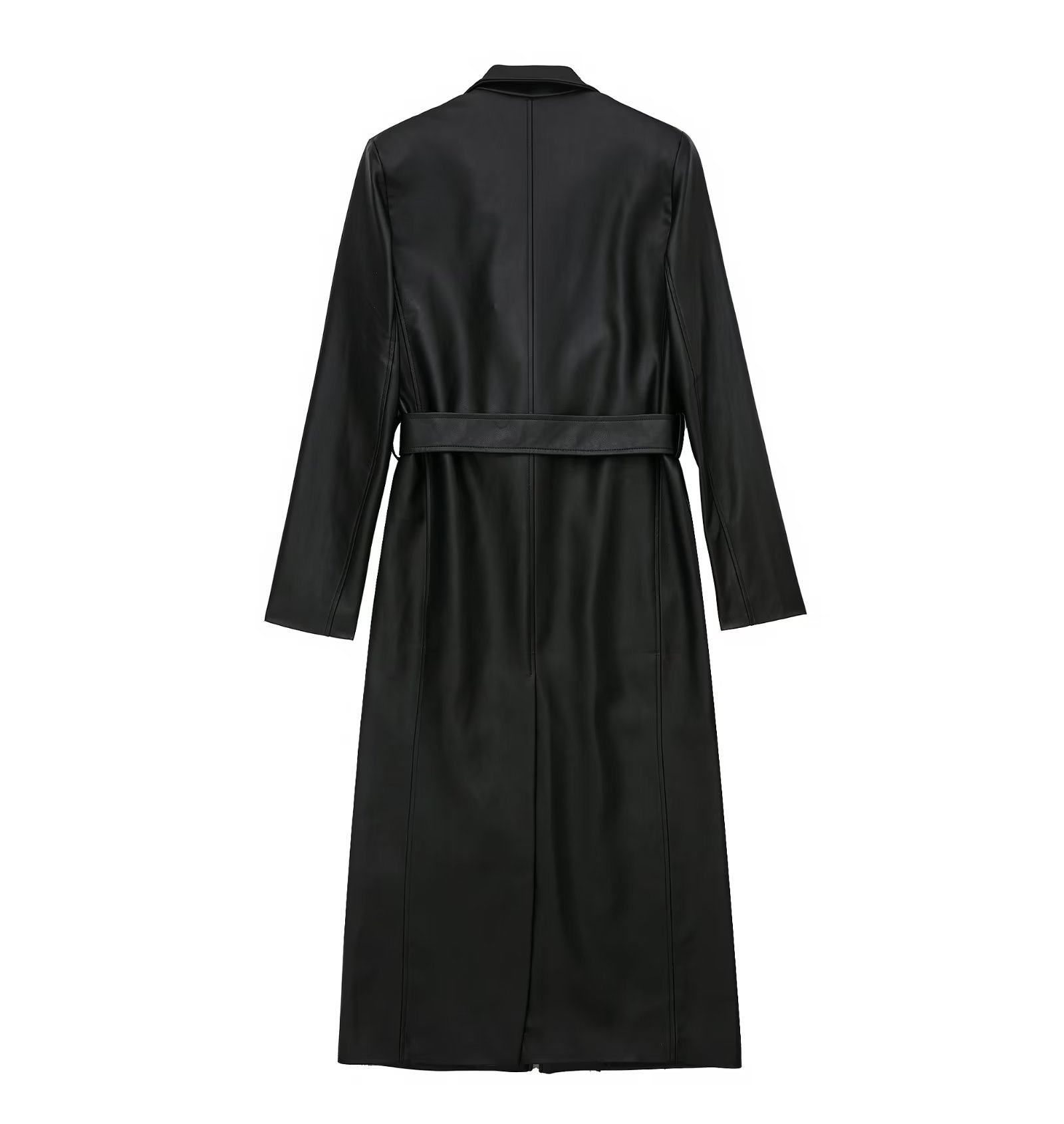 Foreign trade 2022 autumn and winter New European and American style fashion leisure retro long black imitation leather trench coat women's wholesale