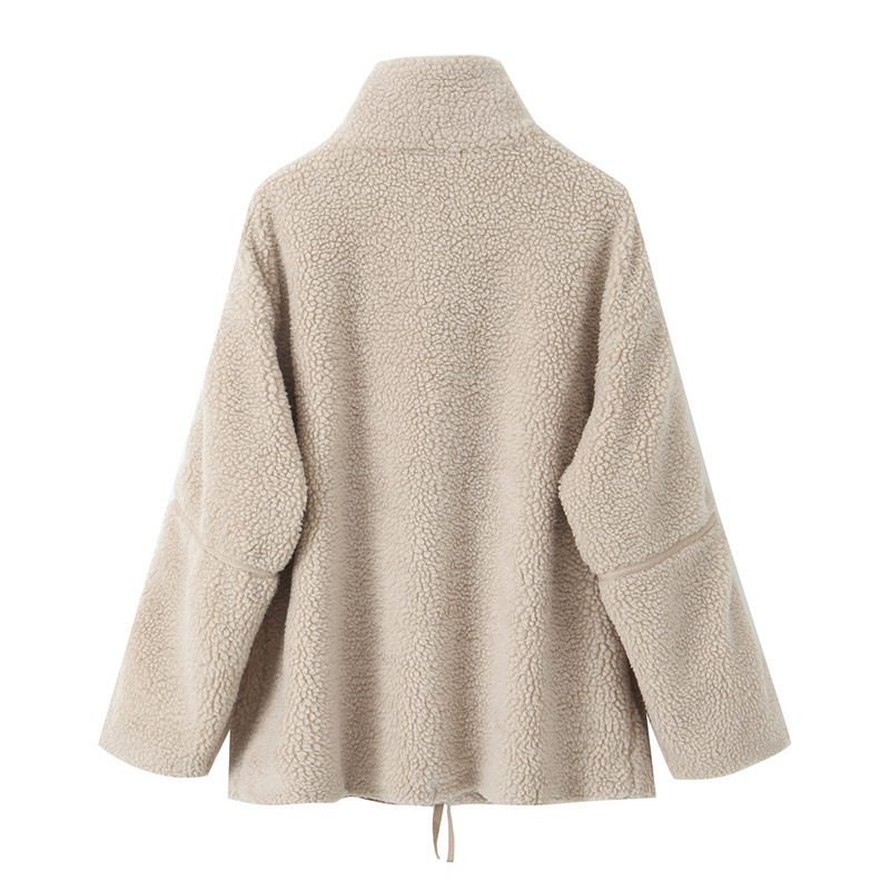 | nameOriginal | Foreign trade 2023 autumn new women's clothing fashion simple classic style Teddy velvet metal zipper jacket coat |
