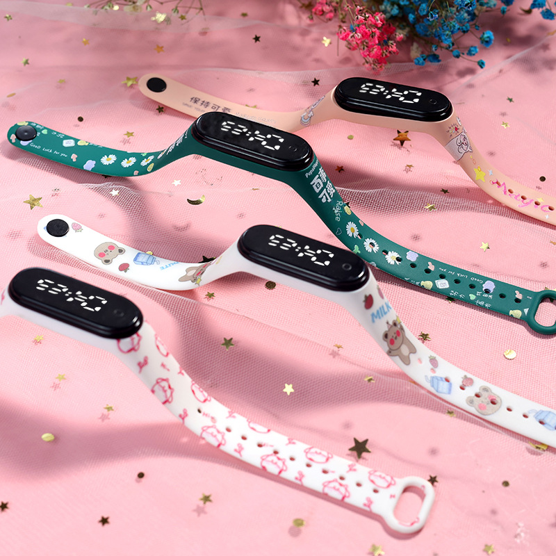 | nameOriginal | Foreign trade 5 generation color printing cartoon LED electronic watch dazzle white light touch screen waterproof student ring dz source factory |