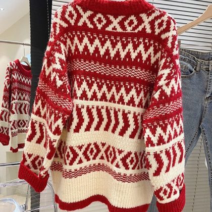 Foreign Trade Autumn and Winter Korean Style Design Sense Niche Crewneck Sweater Women's Holiday Loose Geometric Pullover Knitted Sweater