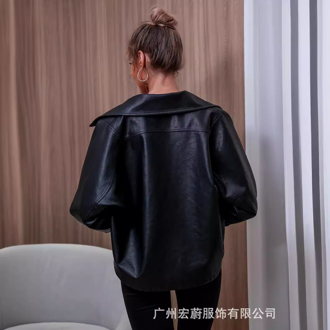 | nameOriginal | Foreign Trade Cross-border Fashion European and American PU Lapel Black Short Leather Jacket Women's Jacket Loose Long Sleeve Women's Leather Jacket |