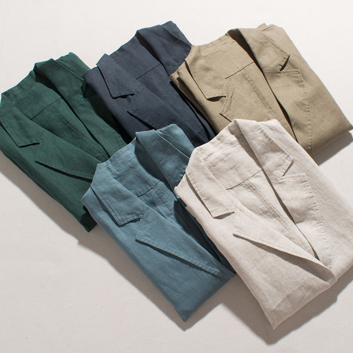 | nameOriginal | Foreign trade Daily single cut label customer supply pure linen casual artistic loose temperament long sleeve small suit top coat for women |