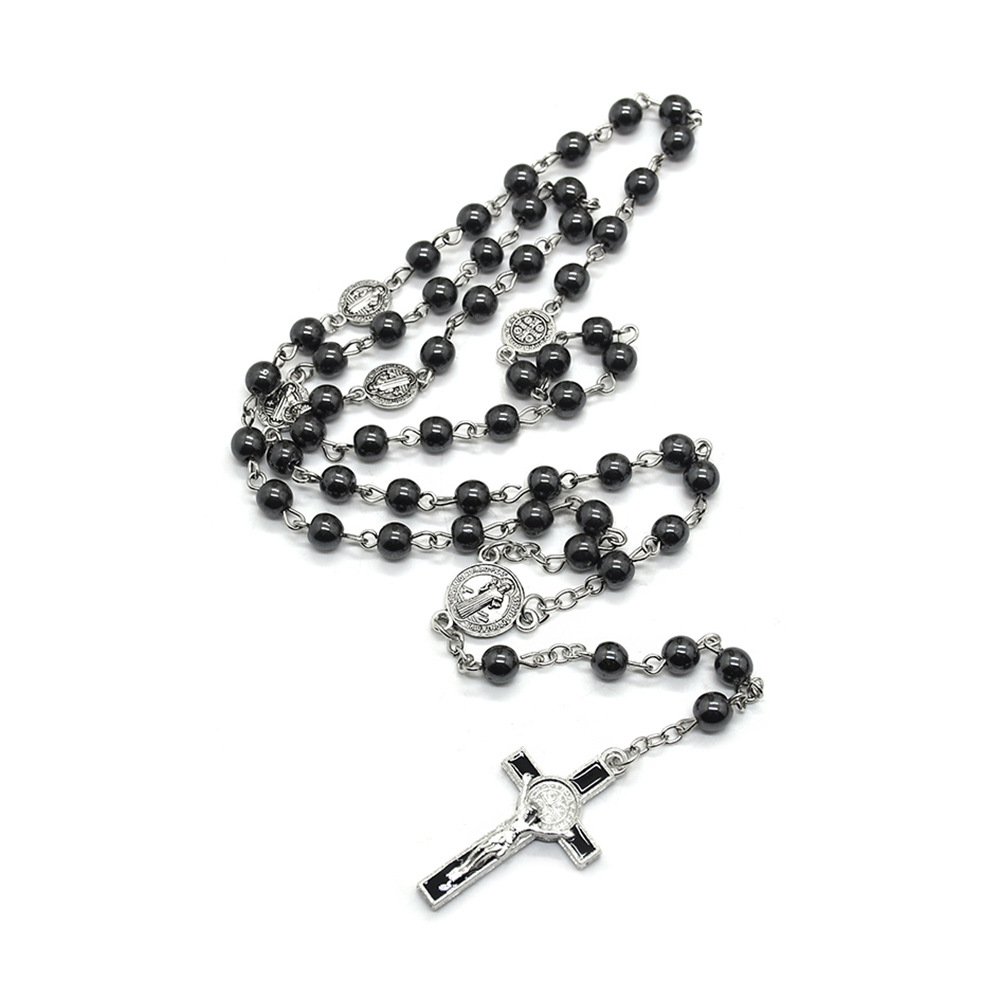 | nameOriginal | Foreign trade e-commerce Saint Benedict black gall stone Rosary necklace cross necklace jewelry Rosary Beads |