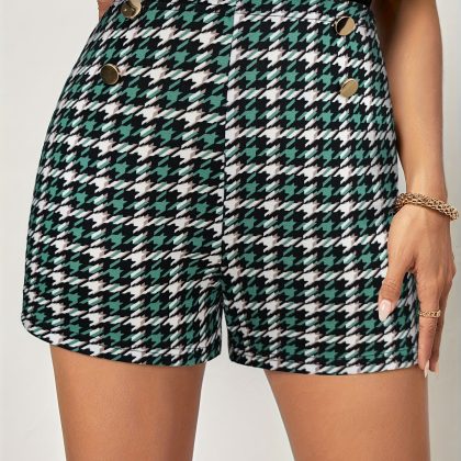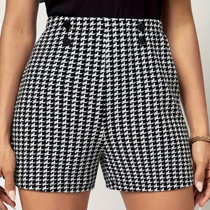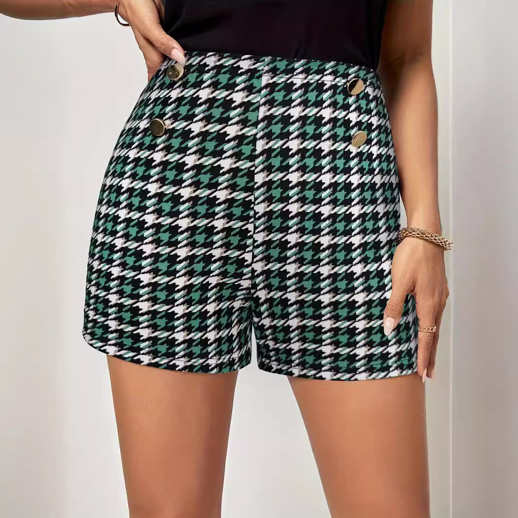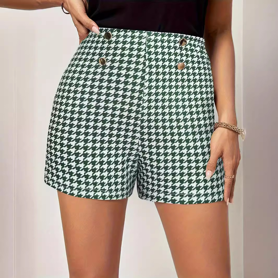 | nameOriginal | Foreign trade elegant classic houndstooth elastic waist button decorative shorts commuter all-match pants casual pants women's clothing |