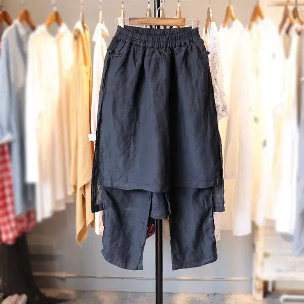 تصدير التجارة الخارجية الطلب الأخير العلامة التجارية الكبيرة قطع التسمية المرأة حقيقية الربيع والصيف حجم كبير السراويل النسائية القطن والكتان تسع نقاط سراويلي حريمي وتنورة العصرية
