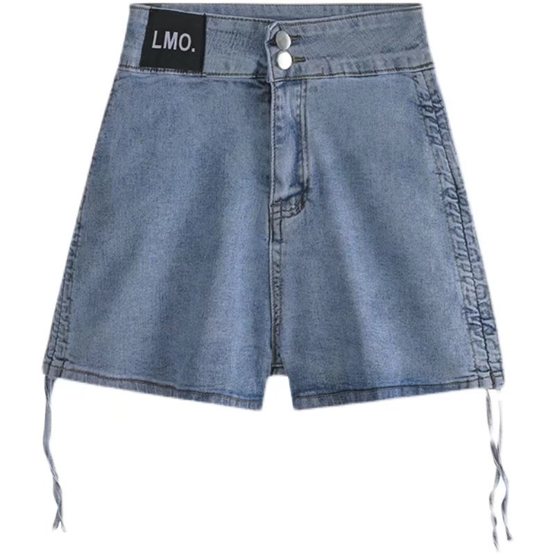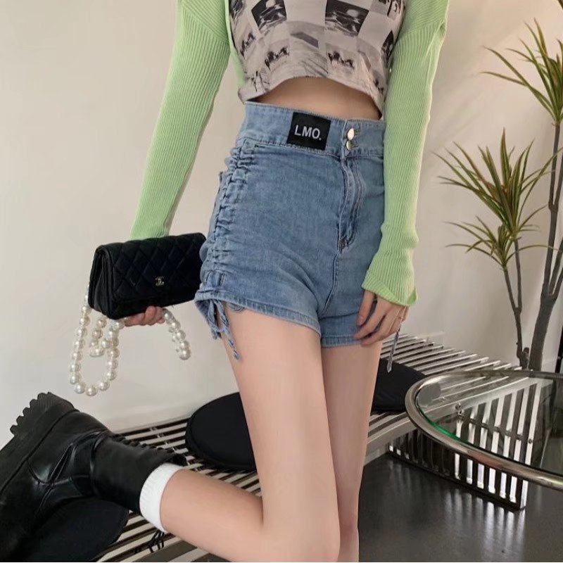 Foreign Trade High Waist Denim Shorts Women's Summer New Korean Style Drawstring Design Sense Slim a-Shaped Strap Hip Hot Pants