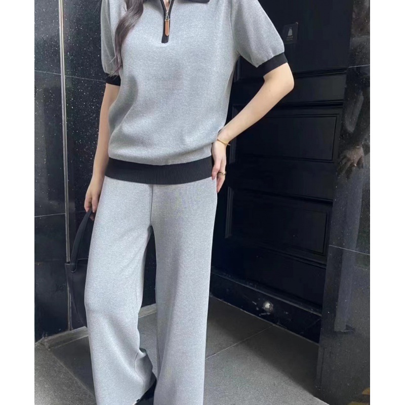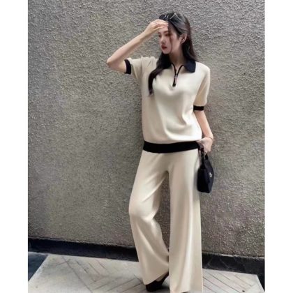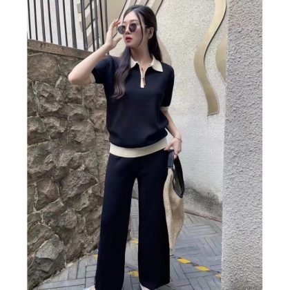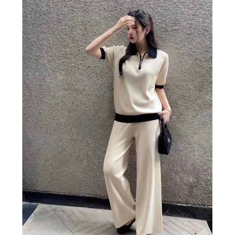 Foreign Trade Lapel Short-sleeved Women's 2024 New Summer Western Style Age-reducing All-match Loose Slimming Knitted Two-piece Set